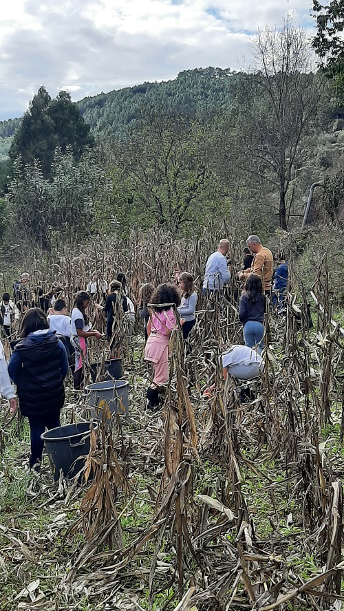 Foi uma atividade muito enriquecedora pois puderam ver de perto esta realidade e contribuíram ativamente para a mesma. Desde descanar, desfolhar, degranhar e no fim moer o milho, tudo isto as crianças fizeram. No final ainda puderam comer dióspiros deliciosos. As crianças tiveram uma experiência maravilhosa com a ajuda da Dona Sónia. Obrigada por nos receber.